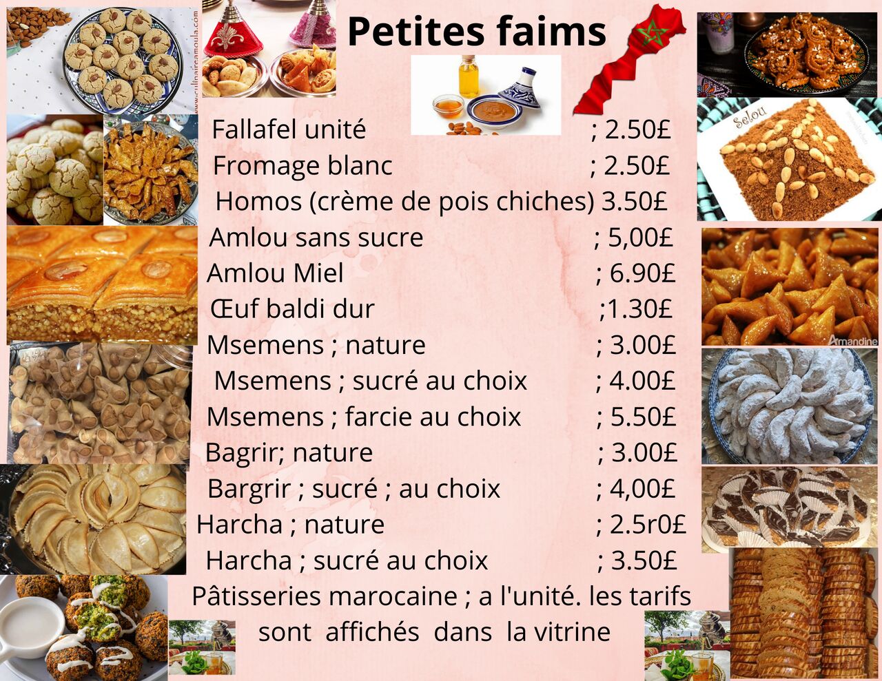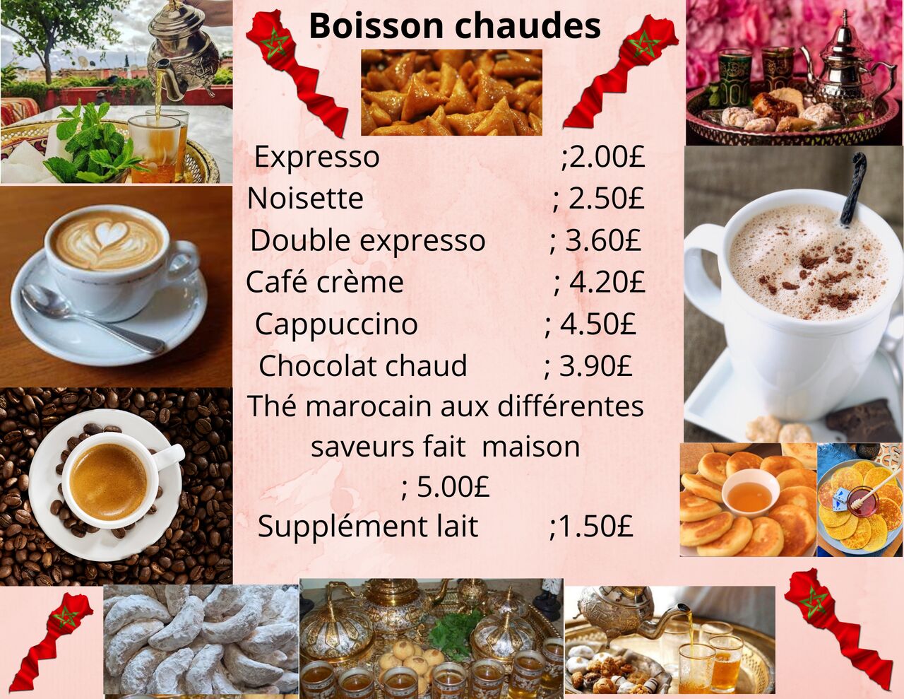 Amenez vos amis et votre famille et profitez-en. Ici, vous pourrez vous régaler de nos délicieux plats et pâtisseries marocaines.